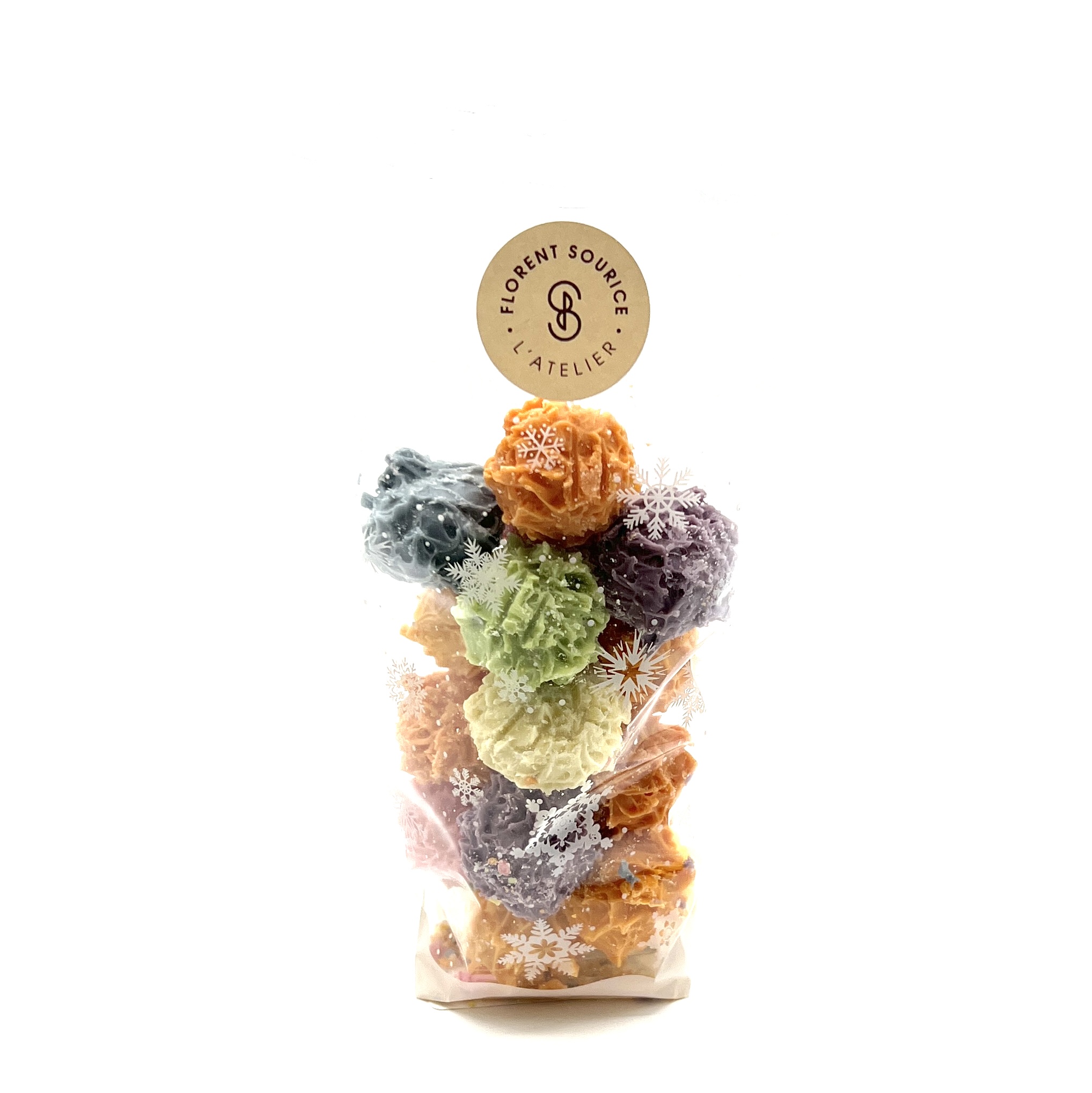 Ingrédients :chocolat blanc (beurre de cacao, sucre, matière grasse anhydre, lait, émulsifiant : lécithine de soja), Ratafia, Cognac, Génépi, Calvados, Myrtille, Poire Williams, Marc de Champagne.